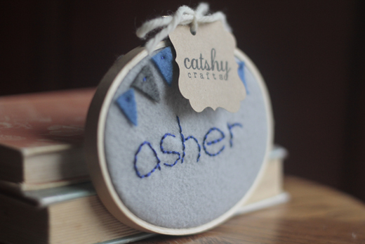 | Felt monogram gift tag (to match the personalized hoop art) |